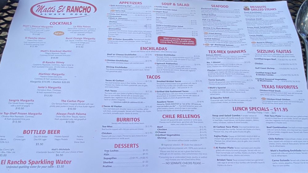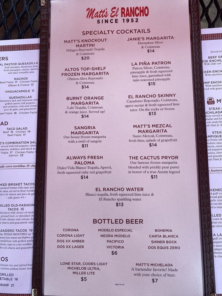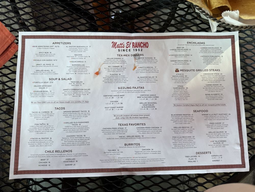 Located in Austin, Texas, Matt's El Rancho offers a vibrant Tex-Mex dining experience. The restaurant boasts a variety of options, including Mexican and seafood dishes, along with vegan and vegetarian choices. With a casual atmosphere, full bar, and outdoor seating, it's ideal for groups and families. Customers rave about the legendary Bob Armstrong queso and flavorful entrees, complemented by top-notch cocktails. While the wait may be long, the friendly service and bustling ambiance make up for it. Valet parking and self-parking options are available. Overall, Matt's El Rancho is a must-visit for those seeking authentic Tex-Mex cuisine in a lively setting.